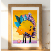 Cette série propose une exploration vibrante de la nature, qui oscille entre le rêve et la réalité. Les compositions mettent en scène des arbres stylisés où chaque élément est fragmenté en formes géométriques, évoquant des vitraux ou des mosaïques modernes. Chaque tableau joue avec les contrastes entre les éléments naturels et des arrière-plans saturés, souvent agrémentés de formes circulaires ou de lignes dynamiques qui guident le regard à travers les différentes couches de la peinture.